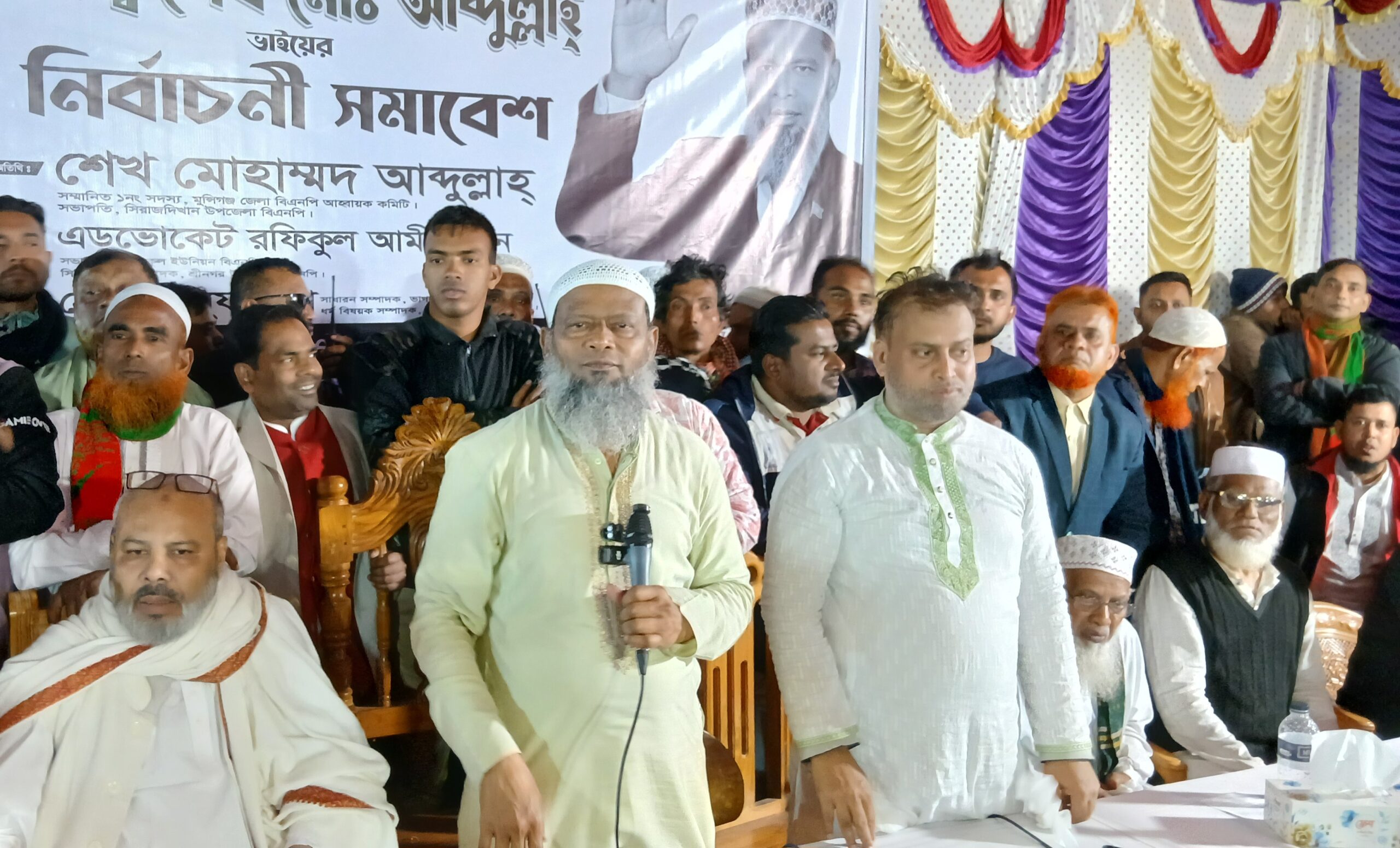শ্রীনগরে বিএনপির প্রার্থী শেখ আব্দুল্লাহ’র নির্বাচনী সভা